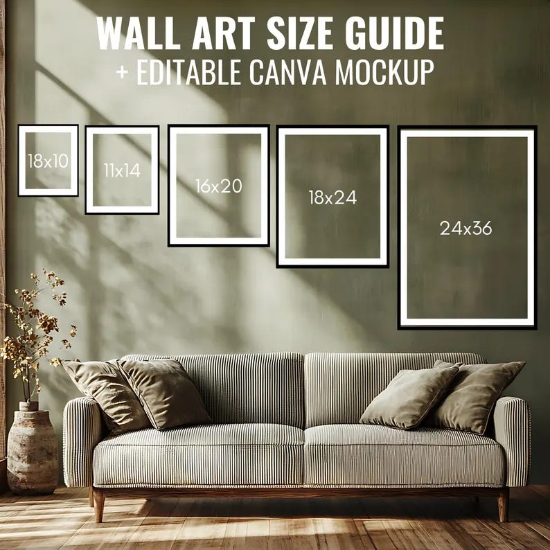 If it is an object, like a poster or item of furniture, a graphic showing the product next to an everyday item can be really helpful for users.