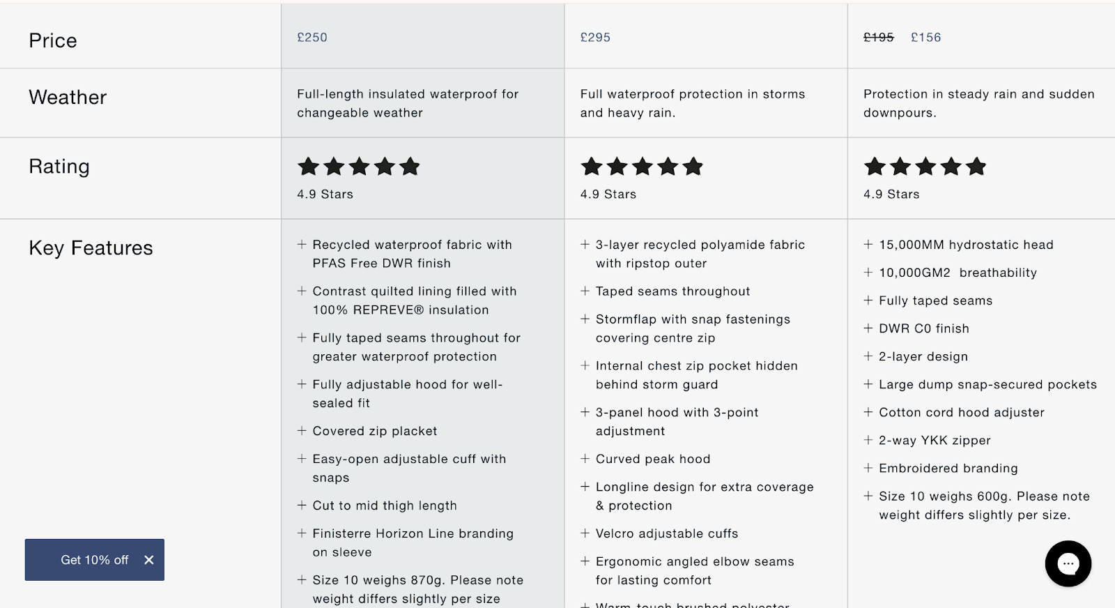 I like the example below from ASICS, which summarises their customer reviews so that you can get an overall perception of the product quality and comfort.