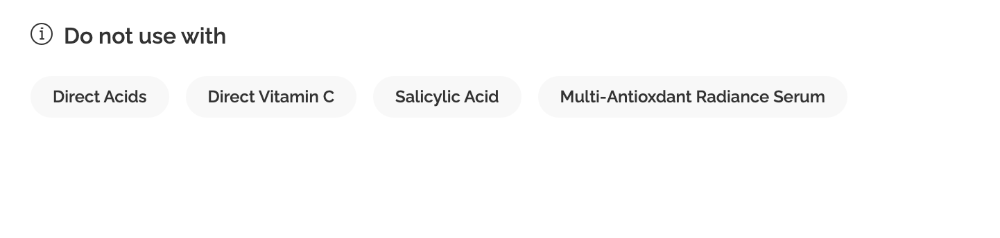 The Ordinary: They’ve gone above and beyond by adding a “do not use with” section on their PDPs, flipping the “best paired with” recommendations on their head.
