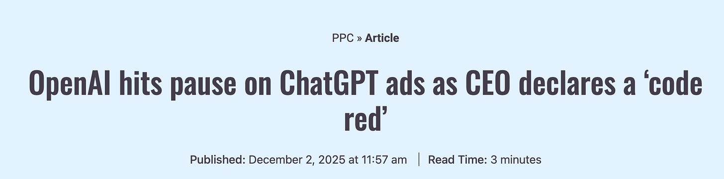 This could go two ways. Gemini took GPT by surprise with its latest model, forcing a shift in priorities or a “code red”, as Altman called it. Consequently, OpenAI must choose: