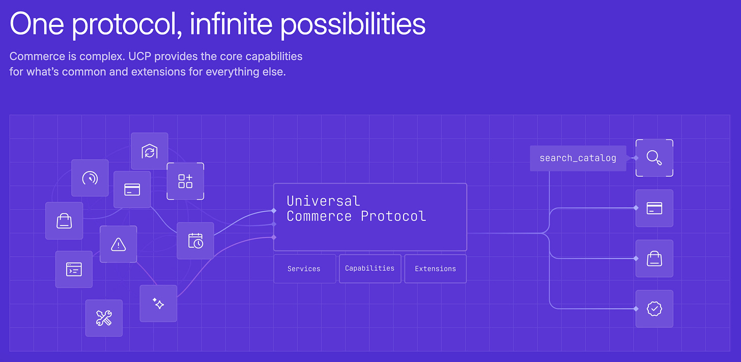 As of January 2026, Shopify and Google already announced their connection through UCP - “the common language between platforms, businesses and agents”, more here: https://ucp.dev/