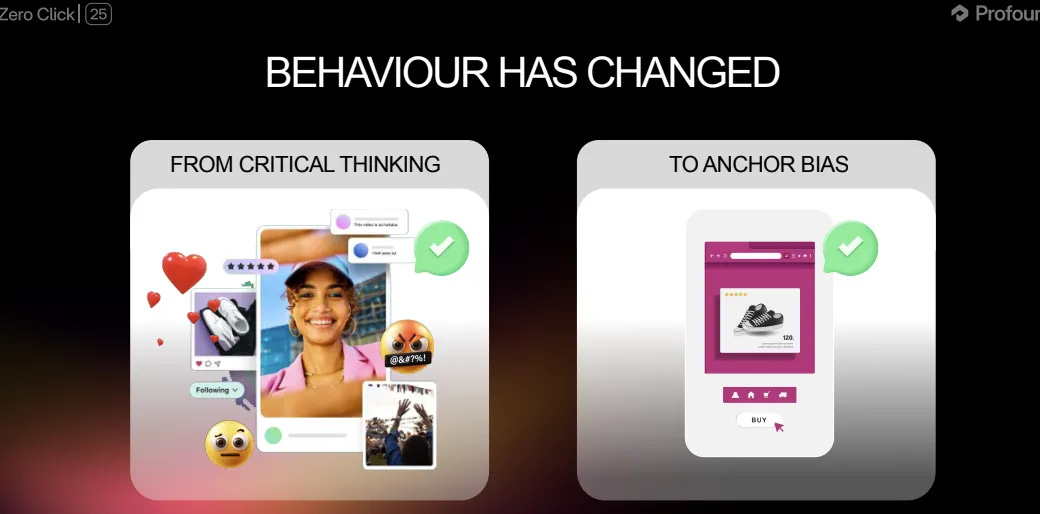 I loved this image, previously you’d hunt around but now you get anchored towards the top recommendation from AI - you may end up doing your own additional research around that anchor but it still has a massive impact on behaviour and purchasing decisions.