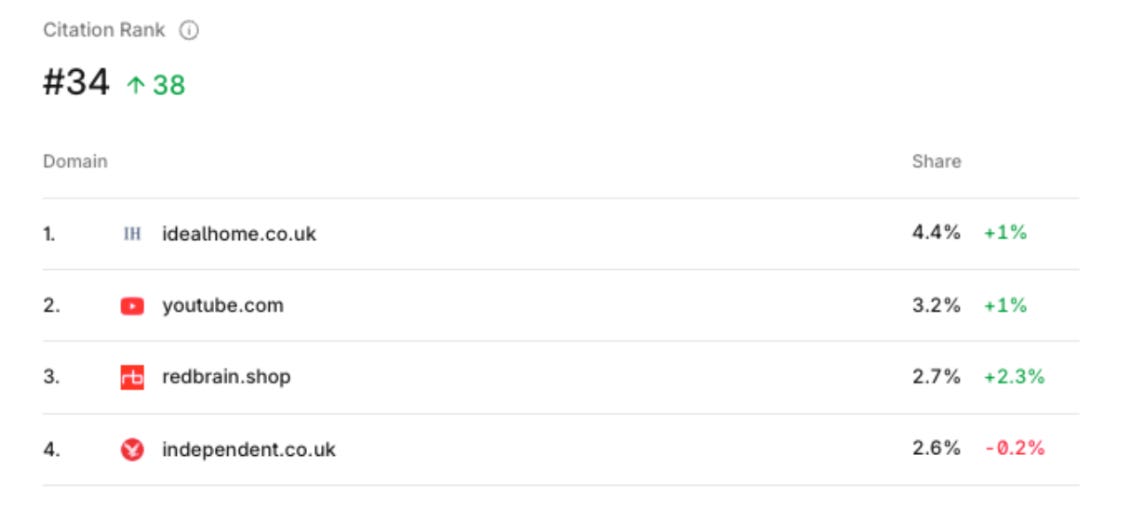 Below shows two different anonymised personas for a brand in the interiors space, which showcases the differences between the types of cited sources depending on the given persona.